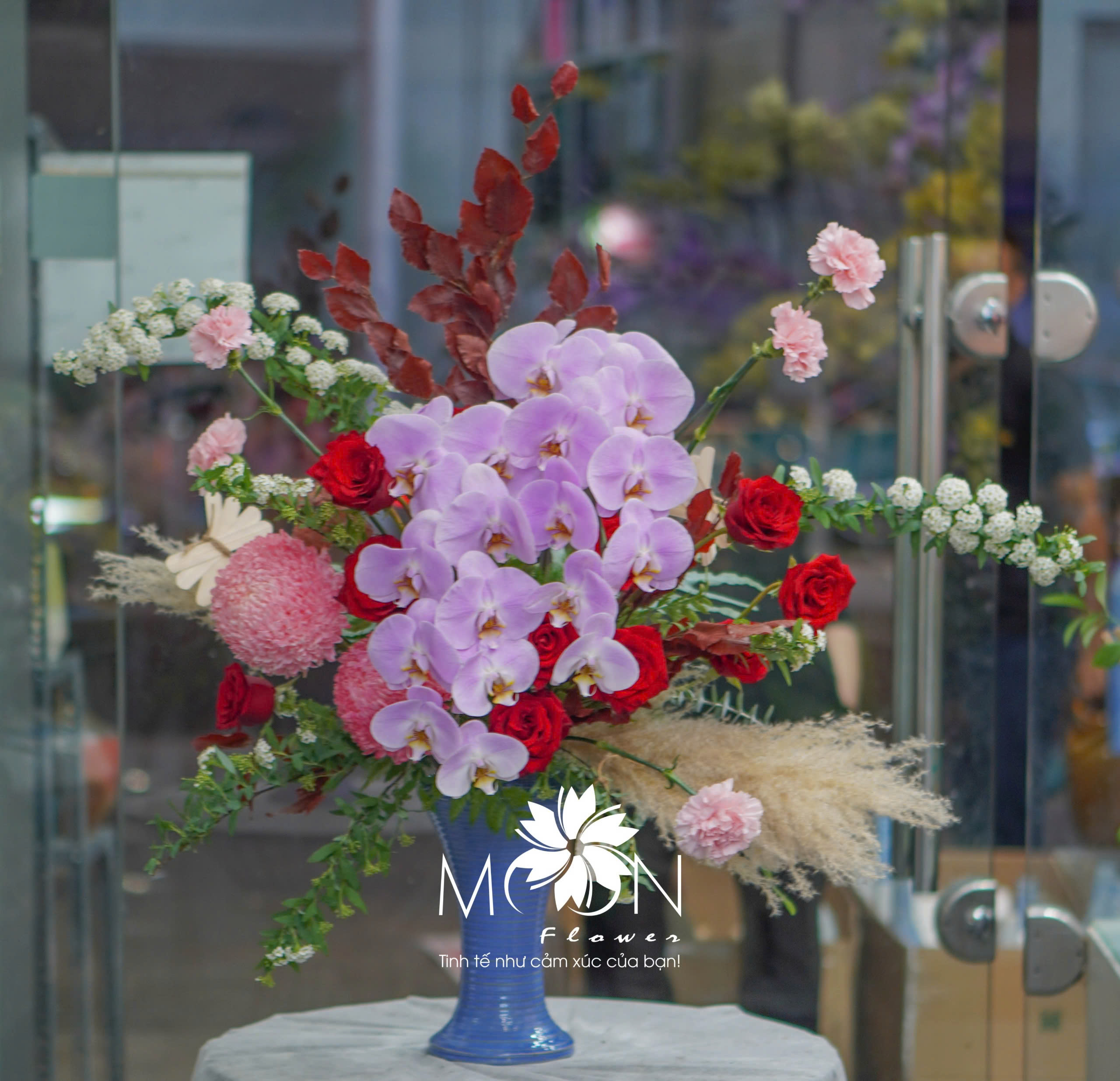 Sản phẩm hoa mẫu chỉ mang tính cvhất tham khảo vì độ nở và màu sắc một số loại hoa trong mẫu theo mùa sẽ không có hoặc ảnh hưởng đến chất lượng. Trong trường hợp cần thiết, chúng tôi sẽ thay thế bằng những loại hoa khác, nhưng Moon Flower cam kết giữ đúng định lượng, kiểu dáng, và đảm bảo sản phẩm luôn tươi đẹp, đầy đặn nhất.