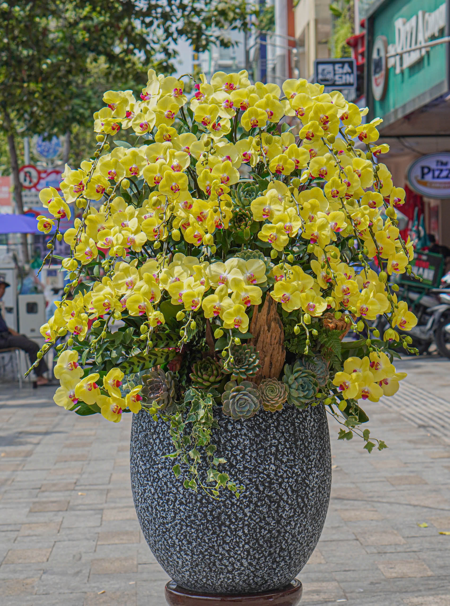 Chậu lan hồ điệp 35 cành vàng được thiết kế siêu to, hoành tráng với bố cục tầng lớp đầy nghệ thuật, mang đến cảm giác sang trọng, đẳng cấp và tràn đầy năng lượng. Sắc vàng rực rỡ tượng trưng cho tài lộc, thành công và thịnh vượng, đặc biệt phù hợp để chúc mừng khai trương, sự kiện lớn hoặc tri ân đối tác quan trọng. Một tuyệt tác lan hồ điệp thể hiện sự tinh tế, bề thế và lời chúc tốt đẹp nhất từ người gửi.