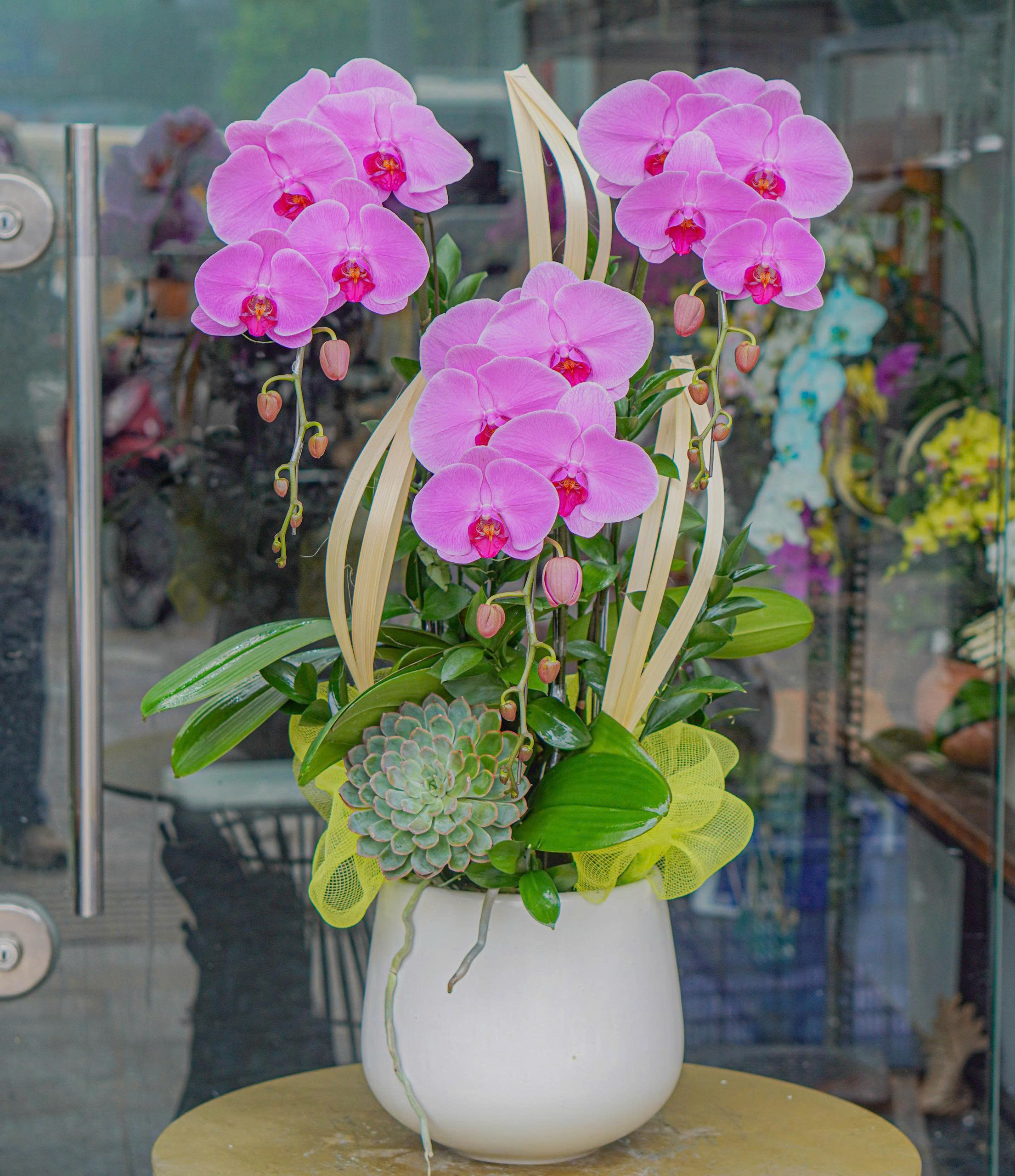 ▪️Hoa chính: Chậu lan hồ điệp hồng 3 cành