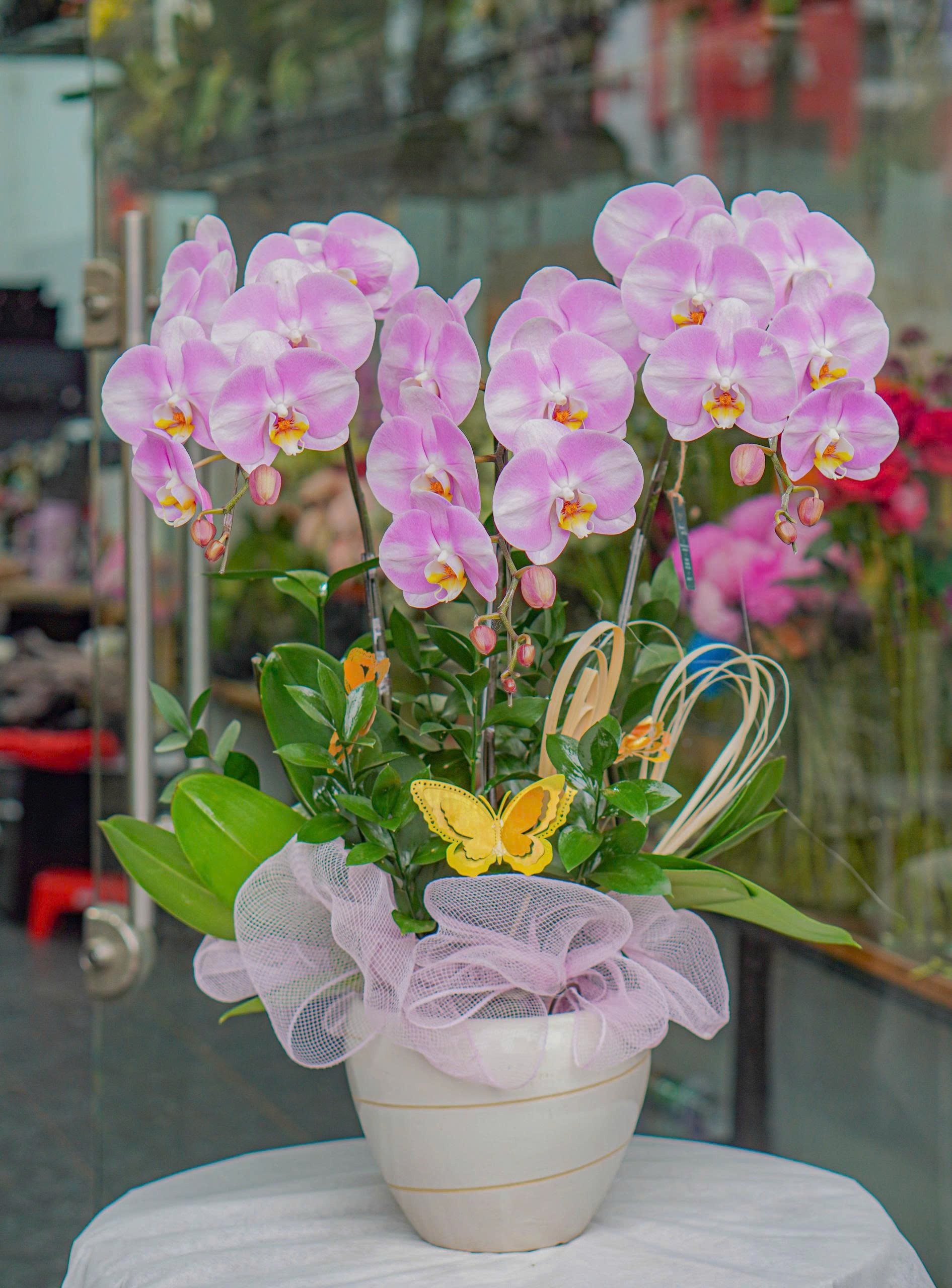 ▪️Hoa chính: Chậu lan hồ điệp hồng 3 cành