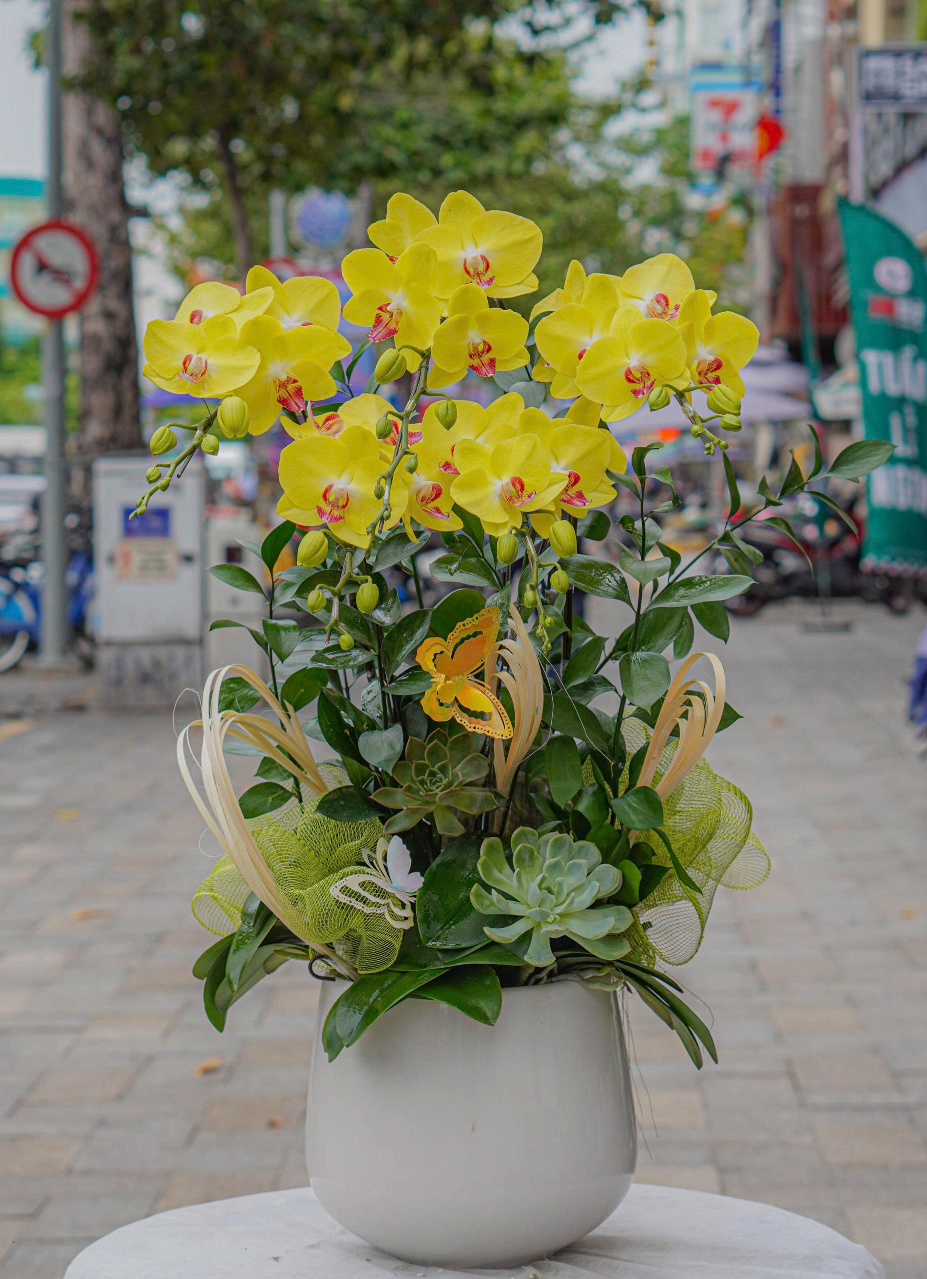 ▪️Hoa chính: Chậu lan hồ điệp mini vàng 5 cành