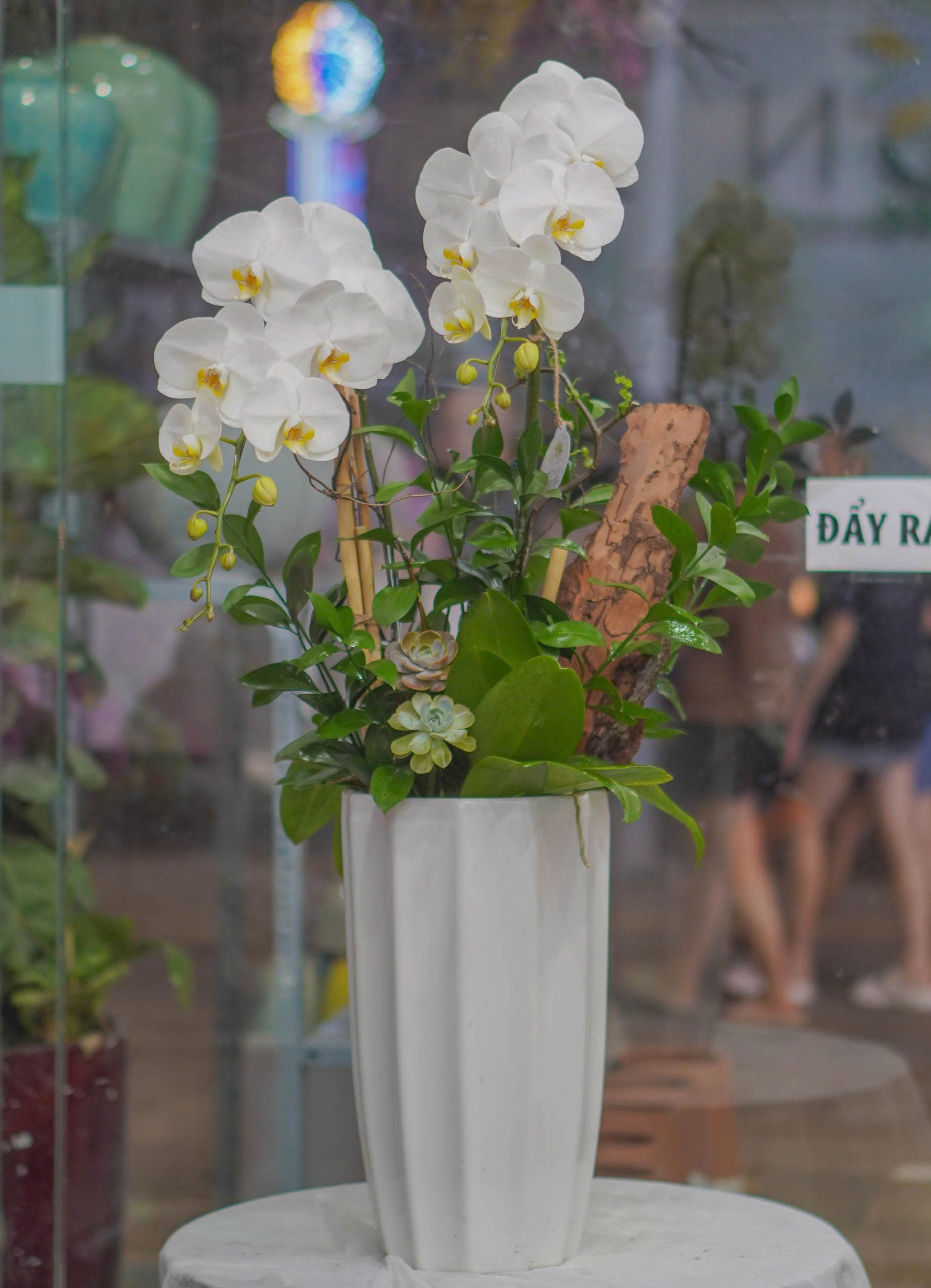 ▪️Hoa chính: Chậu lan hồ điệp trắng 2 cành
