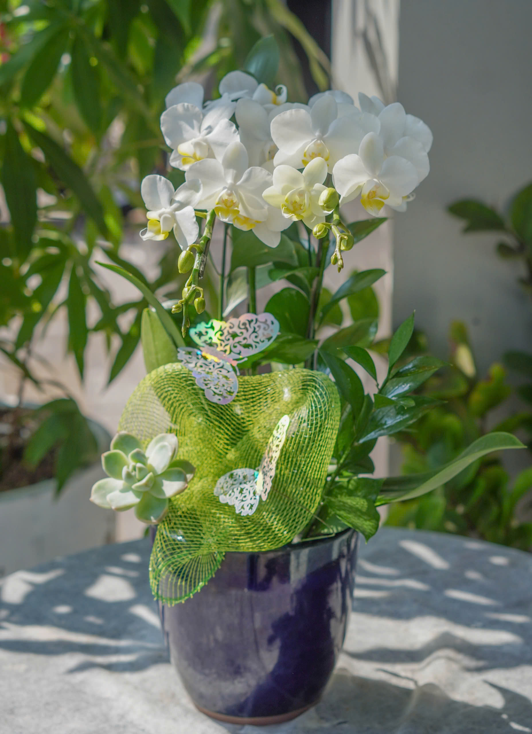▪️Hoa chính: Lan hồ điệp mini trắng