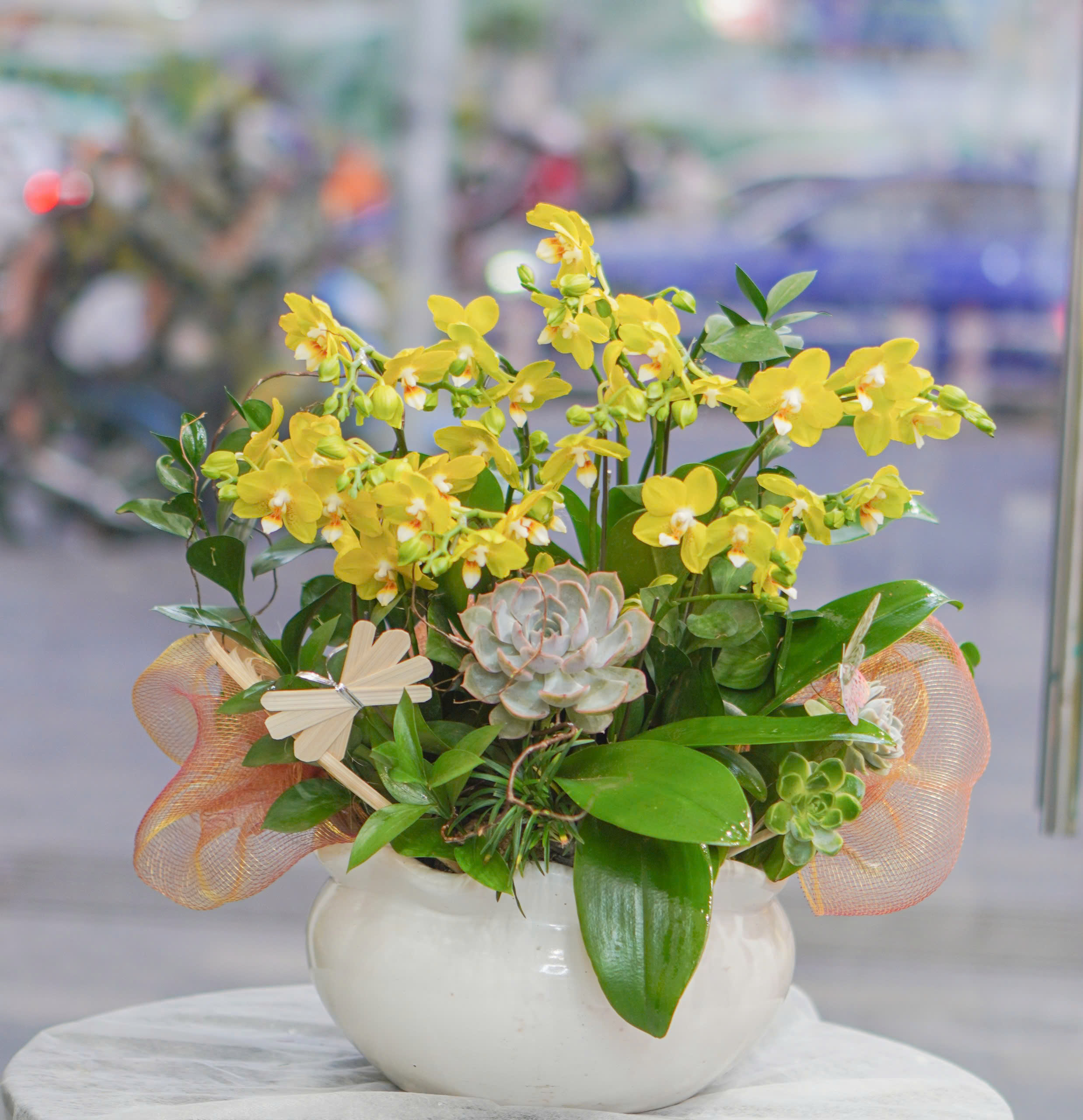 ▪️Hoa chính: Lan hồ điệp mini vàng