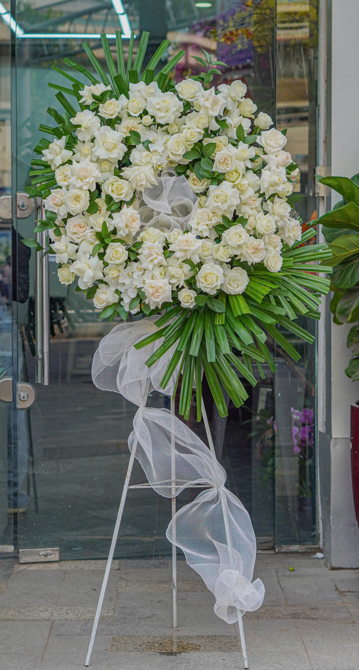 Với tông màu trắng chủ đạo, kệ hoa chia buồn khi đến viếng tang giúp bày tỏ lòng thành kính phân ưu với những người đã khuất. Kệ Hoa Chia Buồn về miền an yên mang đến cảm giác chia sẻ, sự an ủi và cả tình thần động viên đối với người ở lại.