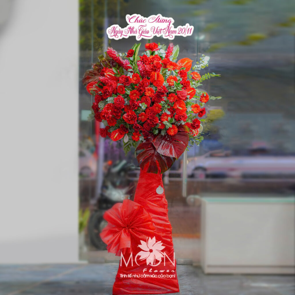 Với sự quan tâm đến từng chi tiết nhỏ, các kệ hoa dịp 20/11 do Moon Flower cung cấp đáp ứng mọi nhu cầu của khách hàng, từ các sự kiện lớn đến buổi lễ trang trọng trong trường học. Chúng tôi cung cấp dịch vụ thiết kế và cắm hoa trên kệ theo yêu cầu, đảm bảo mang đến sản phẩm hoàn hảo, phù hợp với từng ý tưởng tri ân.