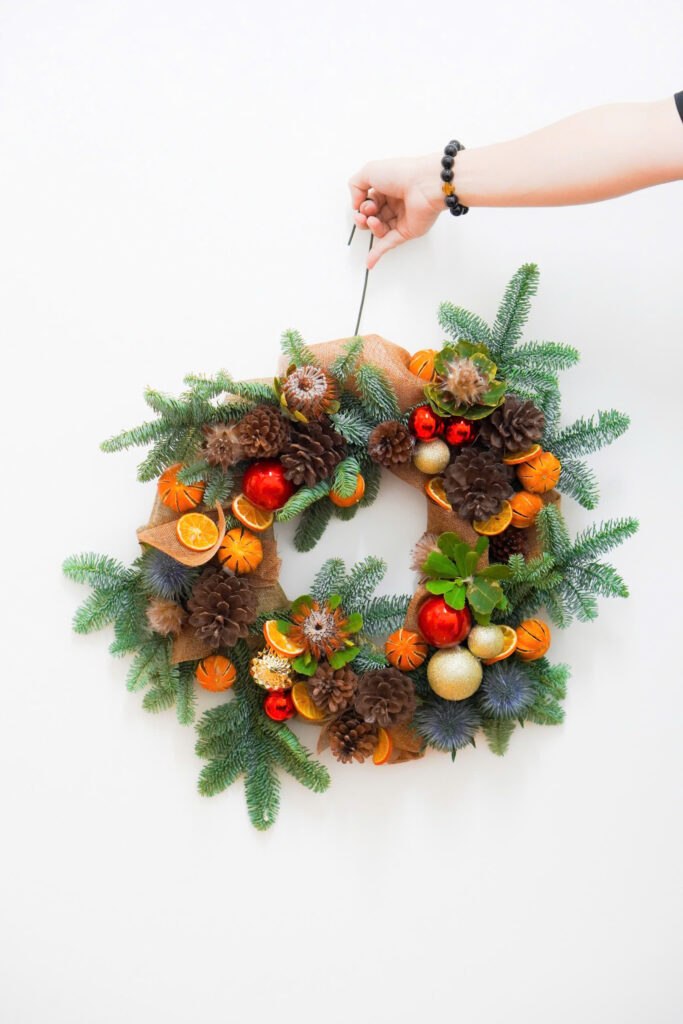 - Làm vòng nguyệt quế: Kết hợp thông tươi với dải ruy băng đỏ và chuông bạc, mang lại không khí Giáng Sinh tràn ngập căn nhà.