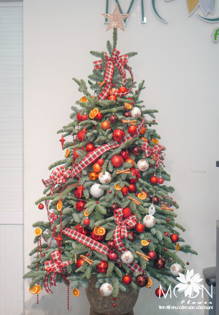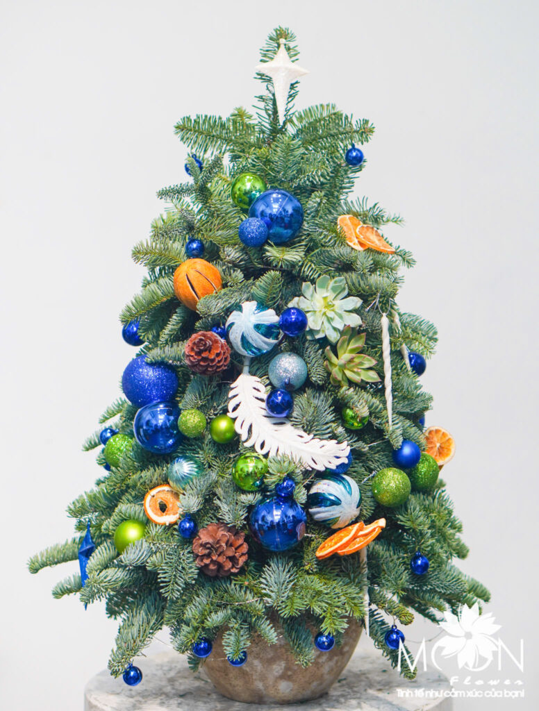 Ngoài ra, mỗi cây thông tại Moon Flower đều được chọn lọc kỹ lưỡng với form dáng chuẩn, tán đều, đảm bảo đẹp mắt từ mọi góc nhìn. Bạn còn có thể kết hợp các phụ kiện trang trí như đèn LED, ruy băng hoặc quả châu để tạo phong cách riêng biệt, ấn tượng cho mùa Giáng Sinh.