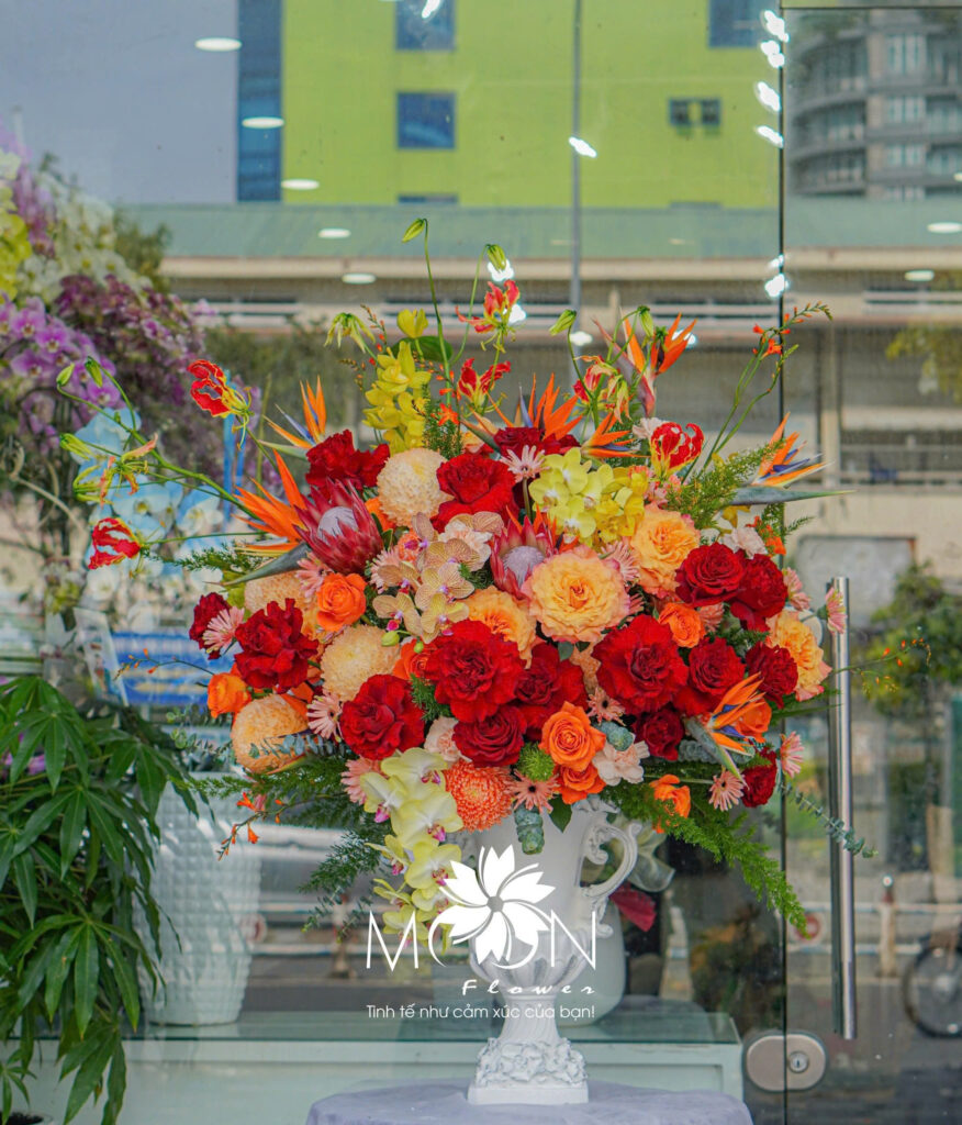 Kệ hoa là một lựa chọn cao cấp, phù hợp để gửi đến các buổi lễ tri ân hoặc tổ chức sự kiện tại trường học. Kệ hoa nghệ thuật kết hợp từ nhiều loại hoa như hồng, cẩm tú cầu, và lan không chỉ tăng thêm sự sang trọng mà còn thể hiện sự chăm chút trong từng chi tiết. Kệ hoa thường được thiết kế với các kệ gỗ thanh lịch, giúp tôn lên vẻ đẹp trang nhã và làm nổi bật không gian. Thông thường, kệ hoa sẽ có màu sắc hài hòa hoặc phối thêm các chi tiết như ren, giấy trang trí, giúp mang lại thông điệp sâu sắc và ấn tượng.