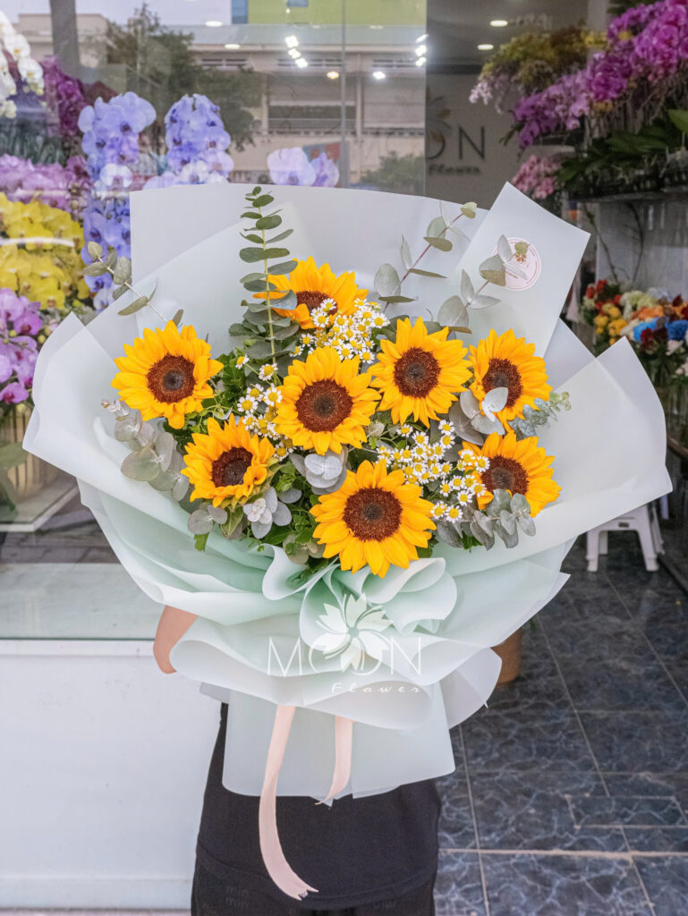 Hoa hướng dương là biểu tượng của sự lạc quan, hy vọng và tấm lòng ngưỡng mộ. Với sắc vàng tươi sáng, hướng dương mang đến thông điệp về sự vững vàng, ý chí kiên định và niềm tin vào một tương lai tốt đẹp. Đặc biệt, hướng dương luôn hướng về phía mặt trời, như cách mà người thầy, người cô dẫn dắt, soi đường cho thế hệ học trò tiến bước. Một bó hoa hướng dương rực rỡ sẽ là món quà thể hiện sự biết ơn chân thành, gửi gắm lời chúc tốt đẹp đến thầy cô trong dịp lễ này.